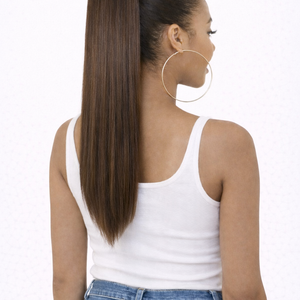 Super glatter Pferdeschwanz, der Ihrer Frisur Länge und Schwung verleiht. Gesichert durch Clips und einen Kordelzug, ist der Zopf schnell und leicht anzubringen.