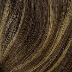 Die Perücke ist mit einem klassischen Mittelscheitel gestaltet und sorgt dadurch für eine harmonische, zeitlose Optik, die sowohl im Alltag als auch zu besonderen Anlässen getragen werden kann. Die weiche, leicht fallende Struktur verleiht dem Haar Bewegung und ein natürliches Volumen.