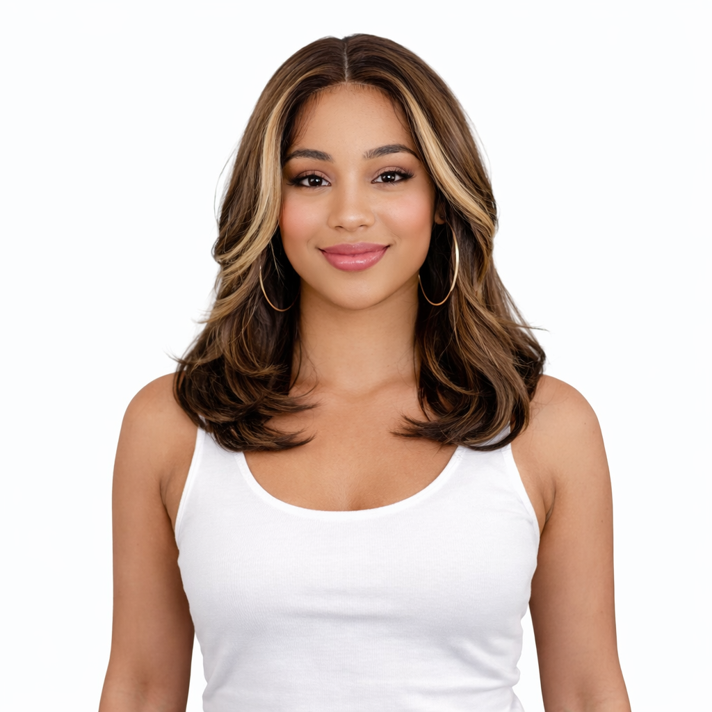 Die Lace Front Wig Torine überzeugt mit einem natürlichen Look, moderner Haarstruktur und angenehmem Tragekomfort. Dank der hochwertigen Verarbeitung und des realistischen Lace-Front-Ansatzes entsteht eine besonders natürliche Haarlinie, die vielseitige Stylingmöglichkeiten ermöglicht.
